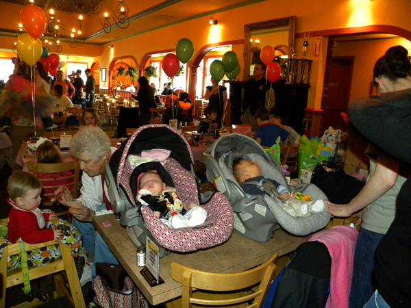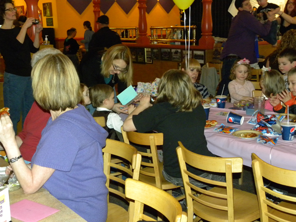 Grandpa Ron and I had fun watching the (mainly 3 & 4 year old) kids at Austin and Sydney’s shared birthday party at Pietro’s Pizza in Milwaukie, Oregon. Actually the Disney princesses and Spiderman combo worked out just fine! LOL! I don’t think the kids noticed – they just donned their princess tiaras and masks without hesitation! More important were the game tokens in the gift bags – and no one said anything about only tokens being in the bags! I think they all had a great time!