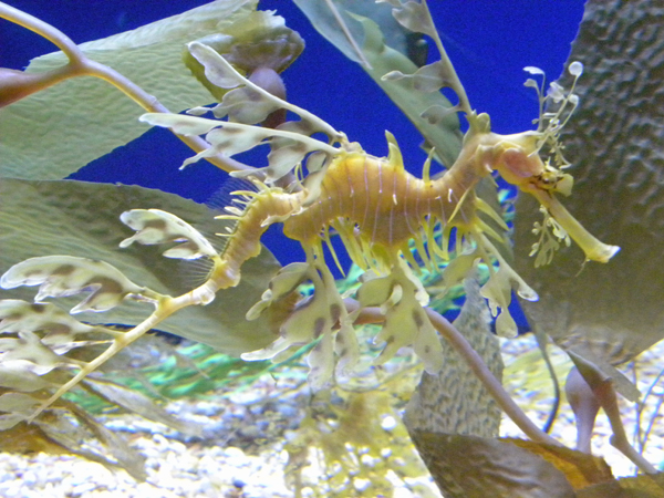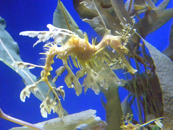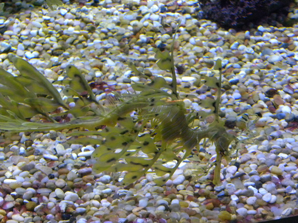 Grandpa Ron and I celebrated our first wedding anniversary all weekend long by revisiting places we went just before our wedding. On Sunday, 10/09/11, we went through the Aquarium of the Pacific. My favorite exhibit is the one containing the Leafy Seadragons. Here are a few photos: