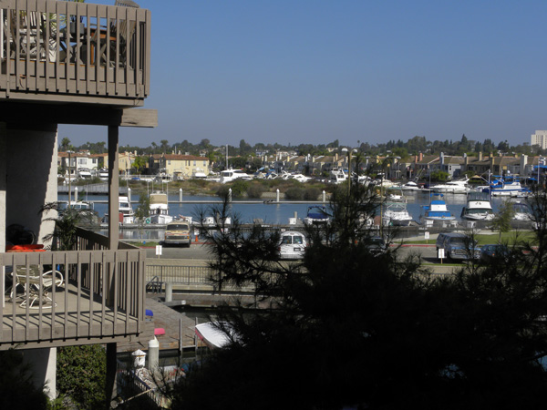 The Houses are all around this area of the Alamitos Bay. The sea lion is on the breakwater in the middle of the photo.